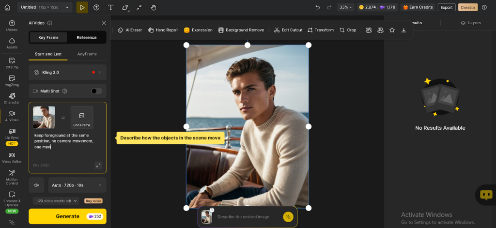 Step 2: Upload your start image. If you want a controlled transition, also upload an end frame.