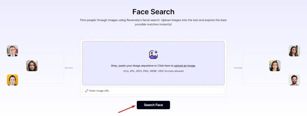- Visit the face search on reversely.ai.